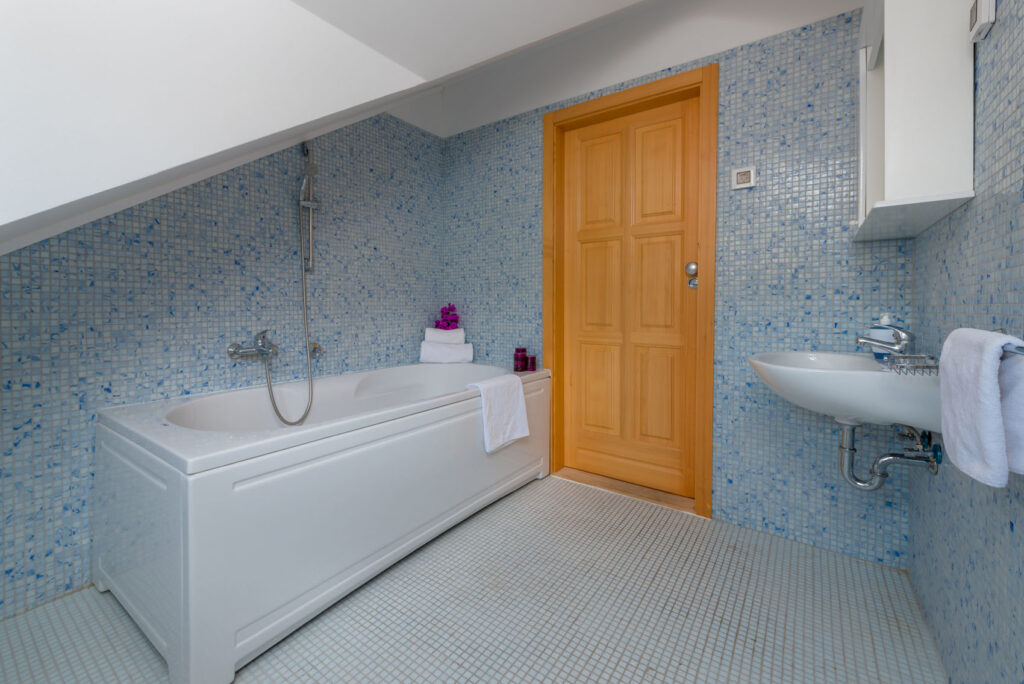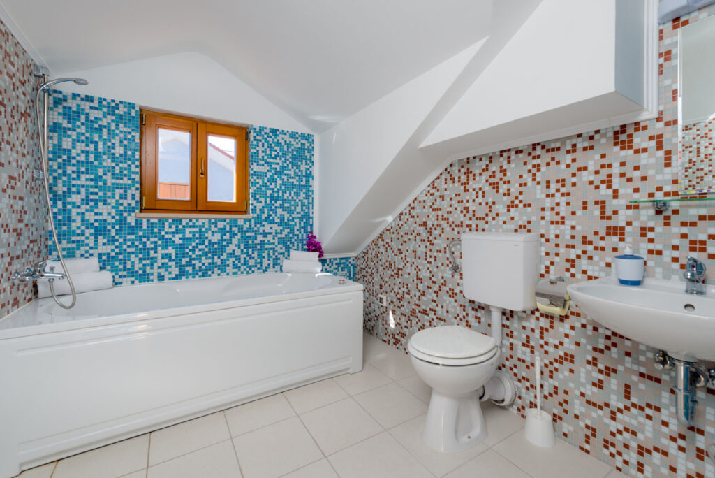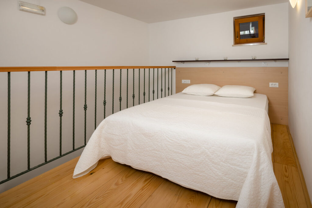 Smještaj za 6+2 osoba, 80m2, na dvije etaže, lijepo i udobno uređen: Dnevni boravak / blagovaona, kauč na razvlačenje (150 cm x 190 cm), sat/LCD, klima uređaj, izlaz na balkon (3m2). Otvorena kuhinja (4 ploče, zamrzivač, mikrovalna). 1 soba s bračnim krevetom (160 cm x 200 cm). Kupaonica s tuš kadom. Gornja etaža: bračni krevet (160 cm x 200 cm); galerija s bračnim krevetom (160 cm x 200 cm), kupaonica s kadom.