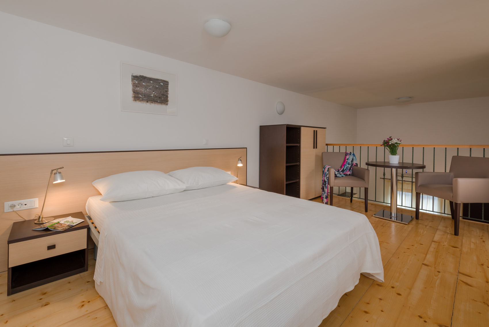 Smještaj za 2+2 osobe, 40m2 na dvije etaže; Dnevni boravak / blagovaona , kauč na razvlačenje (150 cm x 190 cm), sat/LCD. Otvorena kuhinja (2 ploče, zamrzivač). Kupaonica s tuš kadom. Galerija: bračni krevet (160 x 200 cm). Pojedini apartmani ovog tipa imaju balkon.