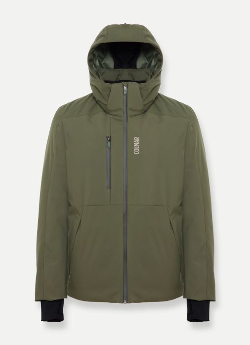 Colmar muška skijaška jakna je primjerena za brojne zimske aktivnosti. Izrađena je od dva mehanički rastezljiva reciklirana materijala. Posebnost ova dva materijala je njihova struktura. Jedan je gladak, a drugi je strukturirani ripstop materijal. Membrana u materijalu osigurava prozračnost i vodoodbojnost. Za dodatnu zaštitu od vremenskih uvjeta, šavovi su djelomično lijepljeni. Jakna je podstavljena rastezljivom podstavom koja osigurava optimalnu udobnost, dok punjenje Clo Univa s 93% recikliranih vlakana osigurava pravu razinu topline. Opremljena je uklonjivom kapuljačom, vodoodbojnim YKK patentnim zatvaračem, dva bočna džepa, džepom za skijašku kartu i unutarnjim džepom. Kapuljača po sredini ima patentni zatvarač uz pomoć kojeg se kapuljača može proširiti i lakše se prilagođava kacigi. Unutar ovog proširenog dijela ima elegantni Colmar natpis. Iznutra je jakna opremljena barijerom koja sprječava ulazak snijega. Korištenje recikliranog punjenja, materijala i vodoodbojnog premaza Teflon EcoElite dio je projekta Colmar Green Path, čiji je cilj povećati poštovanje i brigu za okoliš.