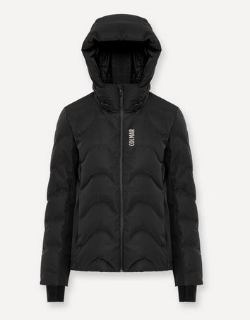 Colmar ženska skijaška jakna s karakterističnim valovitim prošivanjem, izrađena od 100% recikliranog rastezljivog ripstopa u dijamantnom dizajnu koji je vodootporan (ocjena vodootpornosti 15 000 mm) i prozračan (15 000 g/m2/24 sata). Glatki rastezljivi softshell umeci ističu siluetu i olakšavaju kretanje. Optimalna udobnost zajamčena je rastezljivom podstavom i mekim paperjem. Udobna podesiva kapuljača za dodatnu zaštitu od hladnoće.