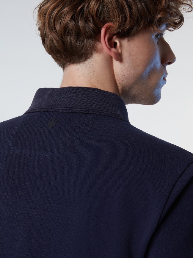 Maserati polo majica ležerna je garderoba, prerađena s avanturističkim duhom koji definira kolekciju Maserati x North Sails. Ova polo majica kratkih rukava izrađena je od tehničkog piqueta, ispredenog posebnim vlaknima koja sadrže antimikrobni dodatak za sprječavanje rasta bakterija. Ima logotip na rukavu i legendarni Maseratijev trozubac na stražnjoj strani ovratnika.